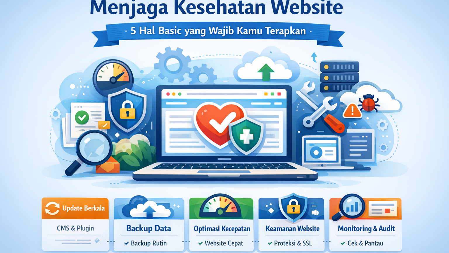 meffasuite.com - Menjaga kesehatan website adalah langkah fundamental yang sering dianggap sepele oleh banyak pemilik website, terutama di tahap awal pengembangan. Padahal, tanpa perawatan yang tepat, website bisa mengalami penurunan performa, rentan terhadap serangan keamanan, hingga kehilangan pengunjung secara drastis.Di era digital yang serba cepat ini, pengguna memiliki ekspektasi tinggi terhadap pengalaman online. Website yang lambat, error, atau tidak aman akan langsung ditinggalkan. Bahkan, mesin pencari seperti Google juga memberikan penilaian lebih rendah pada website yang tidak terawat dengan baik. Oleh karena itu, menjaga kesehatan website bukan hanya soal teknis, tetapi juga strategi penting untuk keberlangsungan bisnis dan branding online.Artikel ini akan membahas secara lengkap dan mendalam 5 hal basic yang wajib kamu lakukan untuk menjaga kesehatan website agar tetap optimal, aman, dan mampu bersaing di mesin pencari.1. Rutin Melakukan Update Sistem dan PluginPentingnya Update untuk Stabilitas WebsiteSalah satu langkah paling dasar dalam menjaga kesehatan website adalah memastikan semua komponen selalu dalam versi terbaru. Ini mencakup: CMS (Content Management System) seperti WordPress Plugin tambahan Tema atau template website Update bukan hanya soal fitur baru, tetapi juga mencakup perbaikan bug dan peningkatan keamanan.Risiko Jika Tidak Melakukan UpdateBanyak kasus peretasan website terjadi karena sistem yang tidak diupdate. Hacker biasanya memanfaatkan celah keamanan dari versi lama yang sudah diketahui publik.Sebagai contoh, sebuah plugin populer yang tidak diperbarui selama beberapa bulan bisa menjadi pintu masuk bagi malware atau script berbahaya.Tips PraktisAgar proses update berjalan aman: Lakukan backup sebelum update Gunakan plugin dan tema dari sumber terpercaya Aktifkan auto-update untuk komponen penting Uji website setelah update untuk memastikan tidak ada error 2. Backup Website Secara BerkalaBackup sebagai Sistem Keamanan UtamaBackup adalah salah satu pilar utama dalam menjaga kesehatan website. Tanpa backup, kamu berisiko kehilangan seluruh data jika terjadi masalah seperti: Server down Website terkena hack Kesalahan saat update Data terhapus secara tidak sengaja Jenis Backup yang DisarankanFrekuensi backup tergantung pada jenis website:Website aktif (e-commerce, berita): backup harian Website bisnis standar: backup mingguan Landing page statis: backup bulanan Media Penyimpanan BackupPastikan backup tidak hanya disimpan di satu tempat. Beberapa opsi penyimpanan: Cloud storage (Google Drive, Dropbox) Server eksternal Hosting dengan fitur auto-backup Tips Praktis Gunakan sistem backup otomatis Simpan minimal 2–3 versi backup terakhir Pastikan backup bisa di-restore dengan mudah 3. Optimasi Kecepatan WebsiteKecepatan = Pengalaman PenggunaKecepatan loading adalah faktor penting dalam menjaga kesehatan website. Pengguna cenderung meninggalkan website jika loading lebih dari 3 detik.Selain itu, Google juga menggunakan kecepatan sebagai salah satu faktor ranking SEO.Faktor Penyebab Website LambatBeberapa penyebab umum: Ukuran gambar terlalu besar Terlalu banyak plugin Hosting berkualitas rendah Tidak menggunakan caching Script yang tidak optimal Cara Mengoptimasi KecepatanBerikut langkah-langkah yang bisa kamu lakukan: Kompres gambar sebelum upload Gunakan format gambar modern seperti WebP Aktifkan caching Gunakan CDN (Content Delivery Network) Minify CSS, HTML, dan JavaScript Pilih hosting dengan performa tinggi Studi KasusSebuah website toko online mengalami peningkatan konversi hingga 25% setelah mempercepat loading dari 6 detik menjadi 2 detik. Ini menunjukkan bahwa kecepatan bukan hanya soal teknis, tetapi berdampak langsung pada penjualan.4. Menjaga Keamanan WebsiteAncaman yang Harus DiwaspadaiDalam proses menjaga kesehatan website, aspek keamanan tidak boleh diabaikan. Beberapa jenis serangan yang umum terjadi: Malware injection Brute force attack Phishing SQL injection Cross-site scripting (XSS) Dampak Serangan WebsiteJika website berhasil diretas, dampaknya bisa sangat serius: Data pengguna bocor Website tidak bisa diakses Reputasi bisnis rusak Penurunan ranking di Google Langkah Dasar KeamananUntuk meningkatkan keamanan website: Gunakan password yang kuat dan unik Aktifkan SSL (HTTPS) Batasi percobaan login Gunakan plugin keamanan Update sistem secara rutin Pentingnya SSLSSL (Secure Socket Layer) berfungsi untuk mengenkripsi data antara server dan pengguna. Website dengan HTTPS lebih dipercaya oleh pengunjung dan juga disukai oleh Google.Tips Praktis Gunakan autentikasi dua faktor (2FA) Ganti password secara berkala Scan website untuk malware secara rutin Hapus plugin atau tema yang tidak digunakan 5. Monitoring dan Audit Website Secara BerkalaMengapa Monitoring Itu Penting?Menjaga kesehatan website tidak cukup hanya dengan setup di awal. Kamu perlu melakukan monitoring secara rutin untuk memastikan semuanya berjalan dengan baik.Monitoring membantu kamu: Mengetahui masalah lebih cepat Menganalisis performa website Memahami perilaku pengunjung Tools yang Bisa DigunakanBeberapa tools yang umum digunakan: Google Analytics Google Search Console Uptime monitoring tools Tools audit SEO Hal yang Perlu DiauditLakukan pengecekan berkala pada: Broken link Error 404 Kecepatan halaman Struktur SEO Keyword ranking Contoh KasusWebsite yang rutin melakukan audit dapat menemukan masalah seperti halaman error atau link rusak sebelum berdampak besar pada user experience dan SEO.6. Optimasi SEO On-Page dan Struktur WebsiteSEO Juga Bagian dari Kesehatan WebsiteBanyak yang tidak sadar bahwa SEO juga termasuk dalam menjaga kesehatan website. Website yang tidak terstruktur dengan baik akan sulit bersaing di mesin pencari.Elemen Penting SEO On-PageBeberapa hal yang perlu diperhatikan: Penggunaan keyword yang relevan Meta title dan description Struktur heading (H1, H2, H3) Internal linking URL yang SEO-friendly Tips Praktis Gunakan keyword secara natural Hindari keyword stuf
